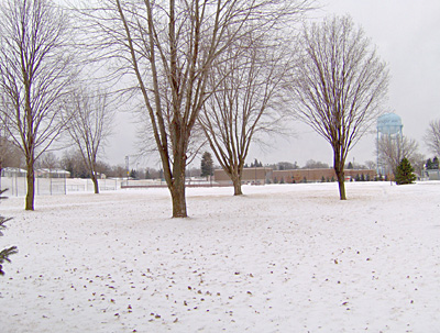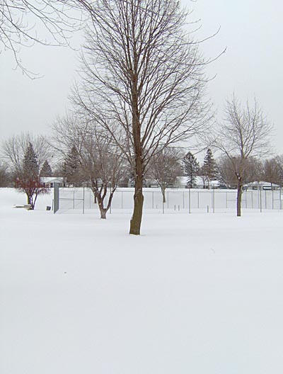 And the next day, things were really white. The fence surrounds the outdoor hockey rink.
