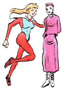 During a visit to the Super-Heroes' Club, she ends up talking with Mira, and goes out with her trolling for muggers. (This is a job for newcomers - who'd be fool enough to mug a recognizeable super?) Mira likes her style, and takes her on as a protege.