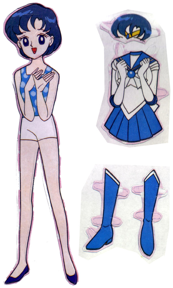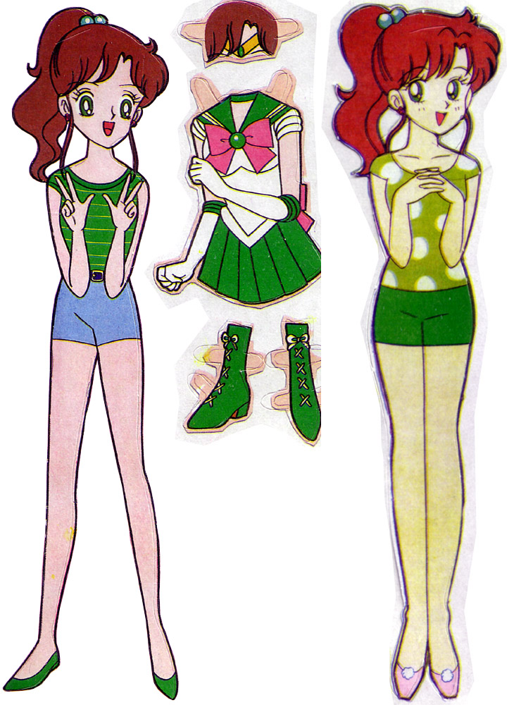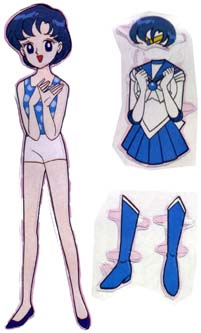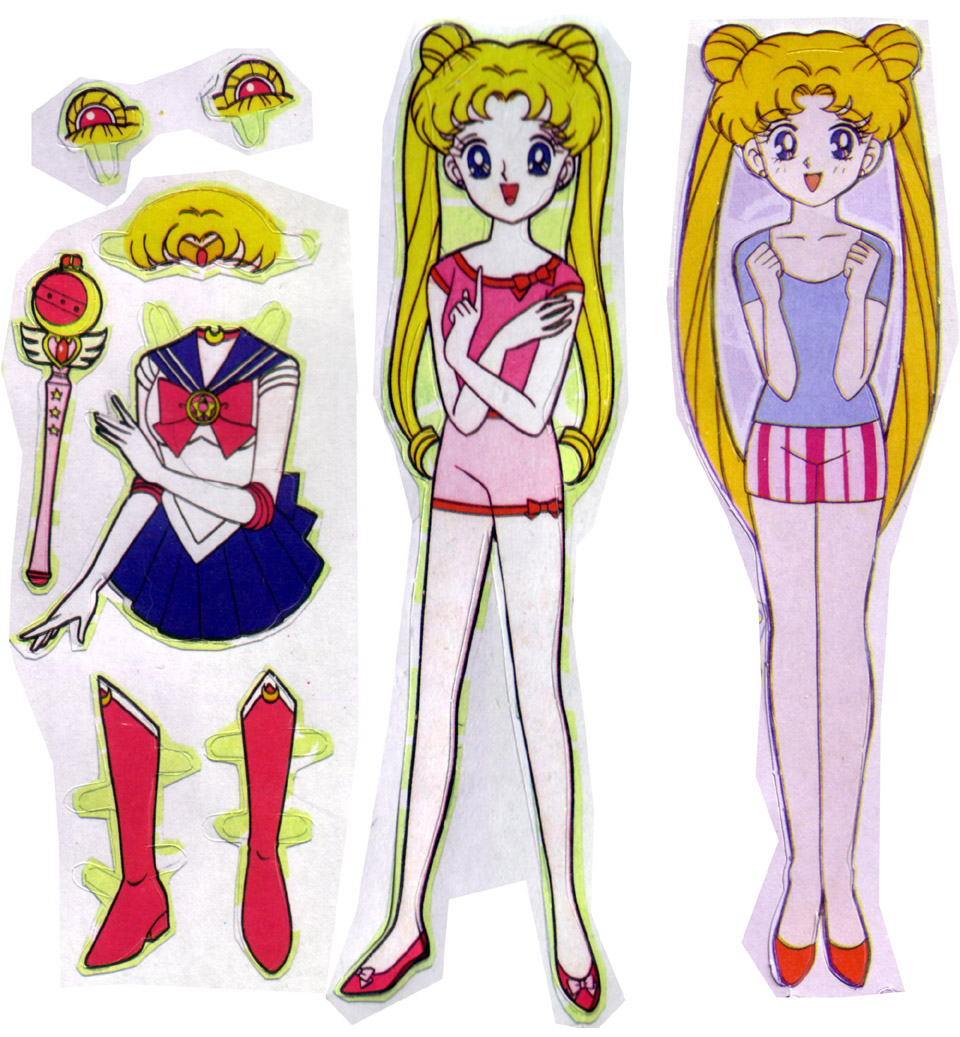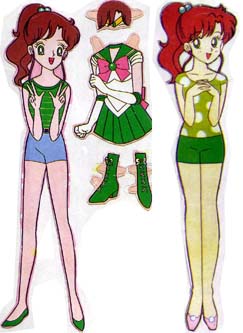 While in Thailand recently, I happened upon some large sheets of paper dolls. Included on the sheet were dolls of the Inner Senshi. Mind you, they were not exclusively Senshi. I'm not sure the designer even knew what the Senshi were. There were two versions each of Jupiter and Moon, Mars didn't even have her fuku, and while Artemis was present, Luna wasn't.
